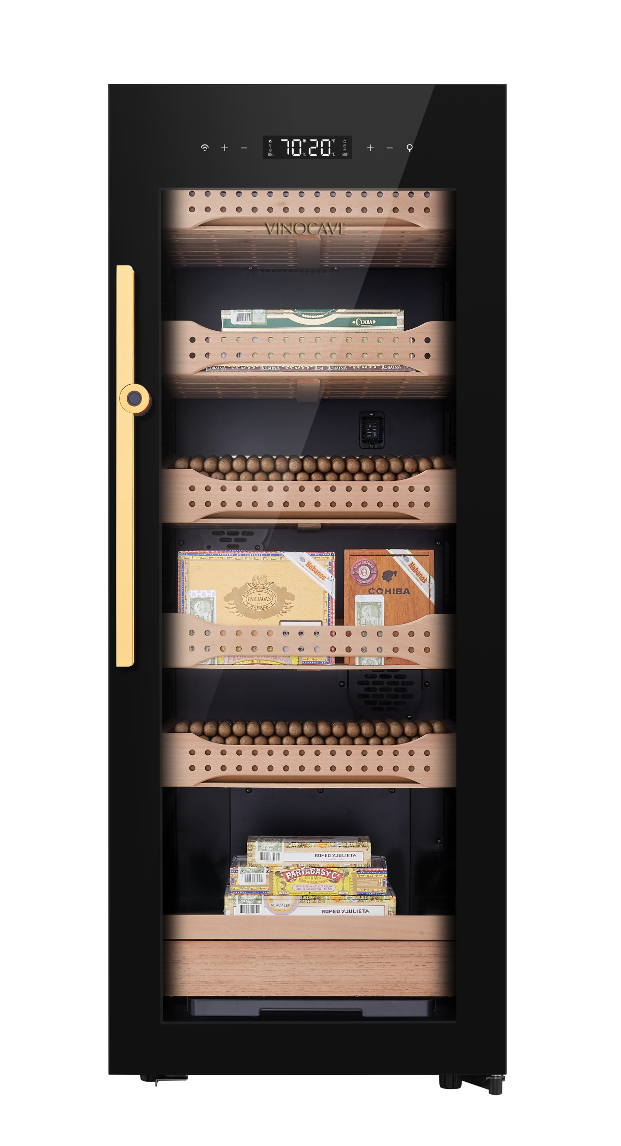 - THE FULL GLASS DOOR equipped with original HPR temperature and humidity constant system to give your cigar a relaxed and comfortable space for fermentation.